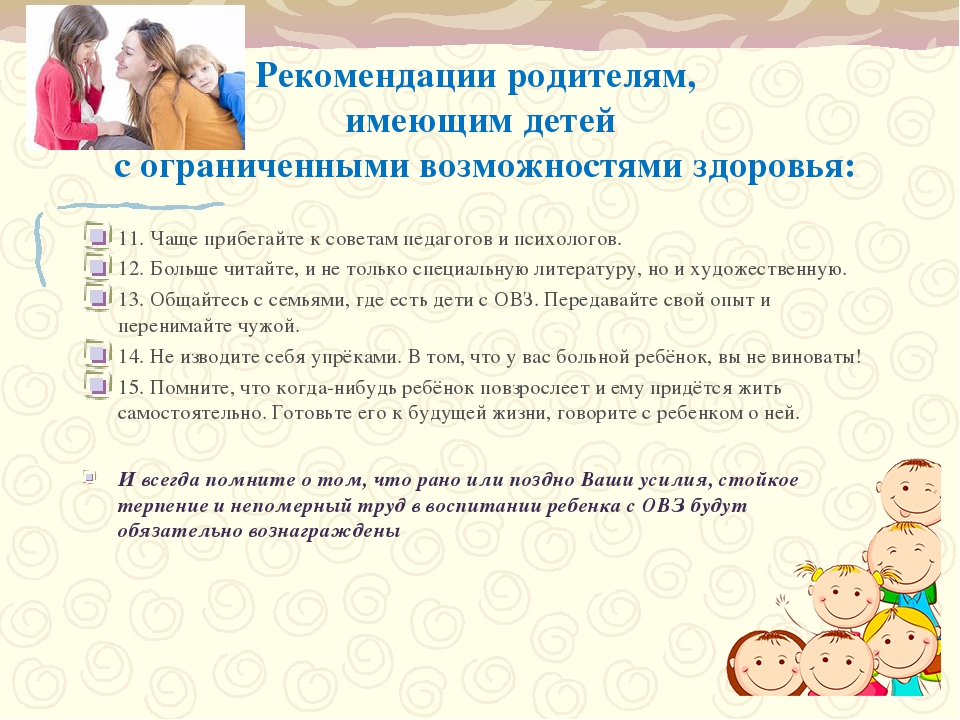 Рекомендции родителям, имеющим детей с ограниченными возможностями