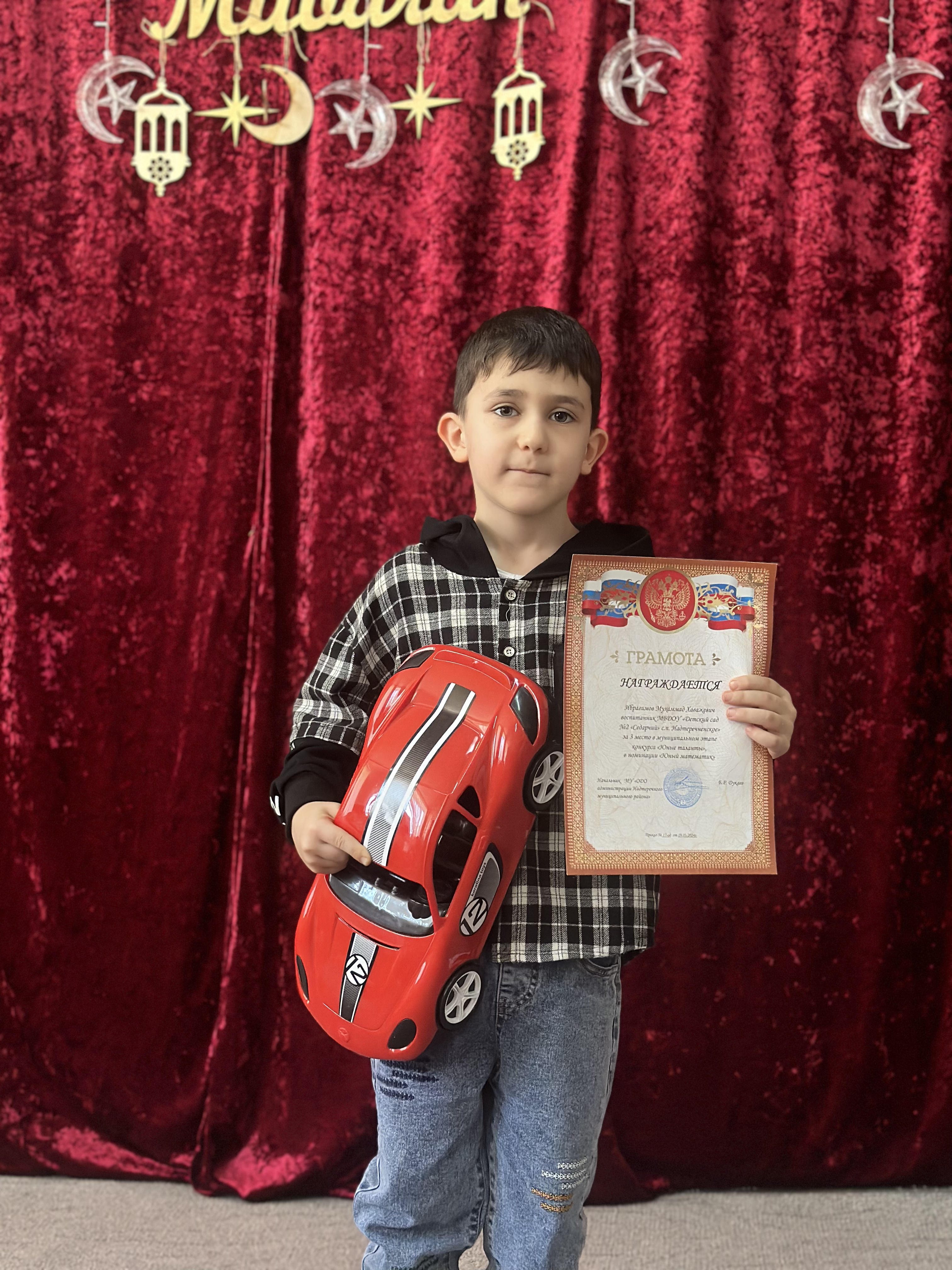 В районном конкурсе «Юные таланты» наш воспитанник старшей группы «Колокольчики» Ибрагимов Мухаммад занял 3 место в номинации «Юный математик»