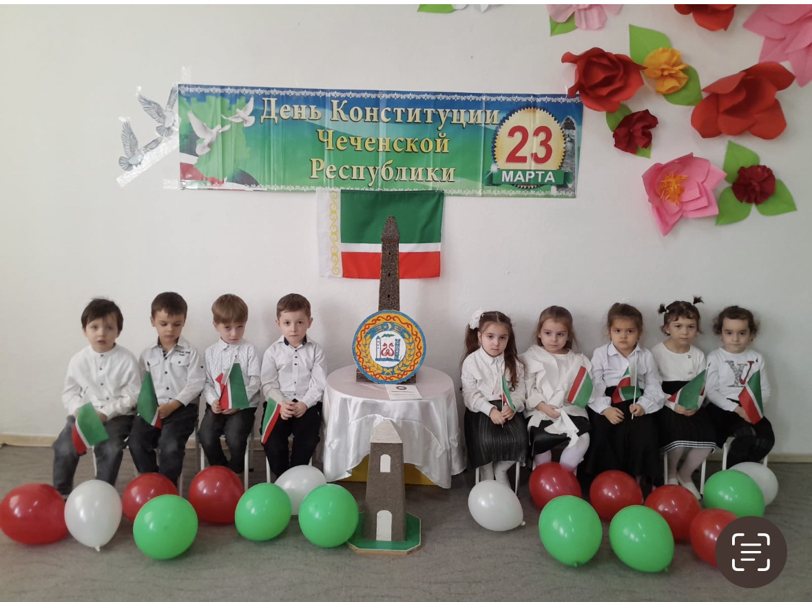 Цель: продолжать знакомить дошкольников с историей принятия основного закона ЧР; дать представления о правах ребенка; обьяснить детям, что такое «право»; формировать представления о правах и обязанностях граждан ЧР.
