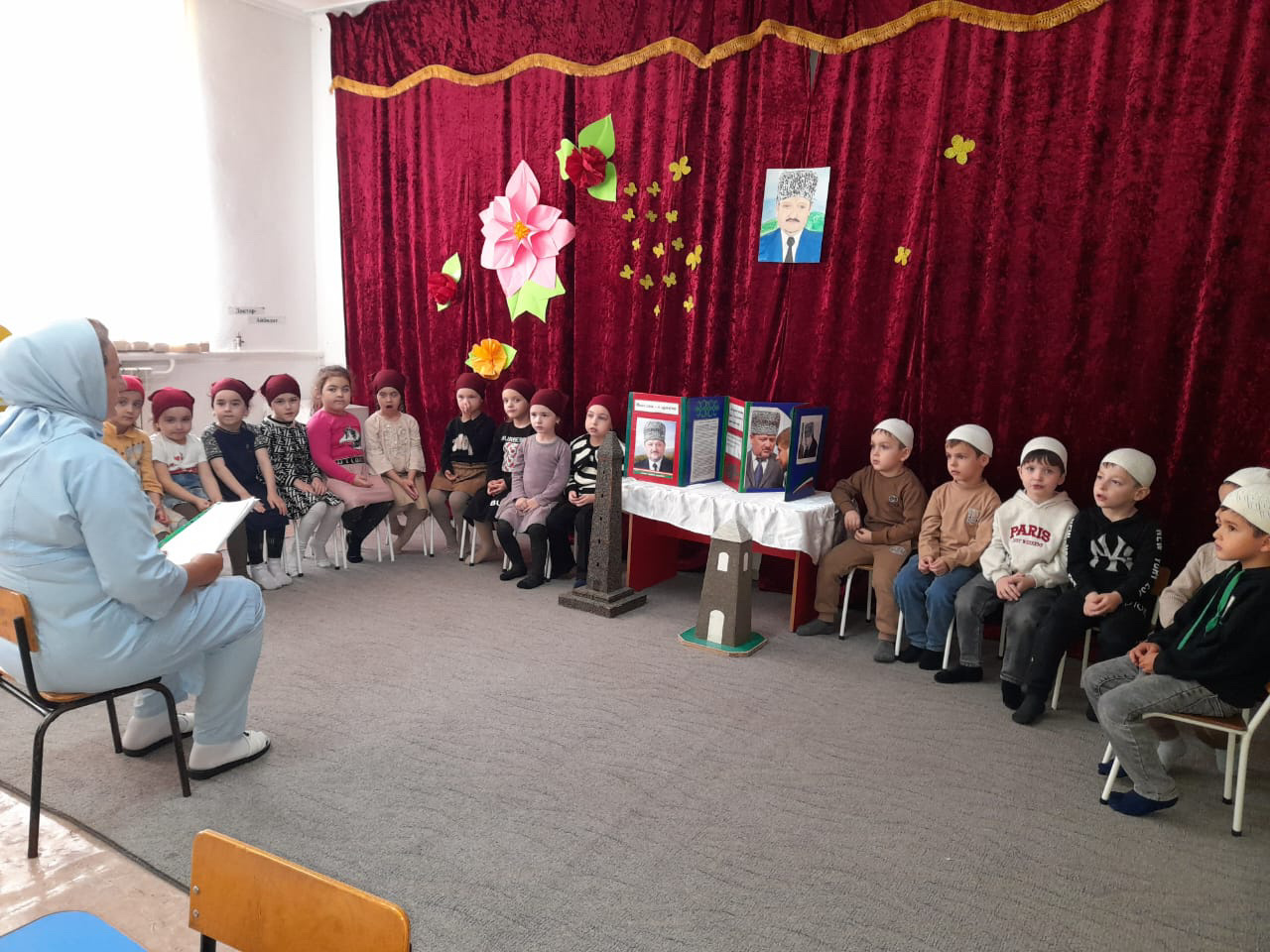 Тематическая беседа приуроченная ко Дню памяти и скорби народов Чеченской Республики на тему" Ахмад - Хаджи Кадыров - Герой нашего времени" в старшей группе "Колокольчики"