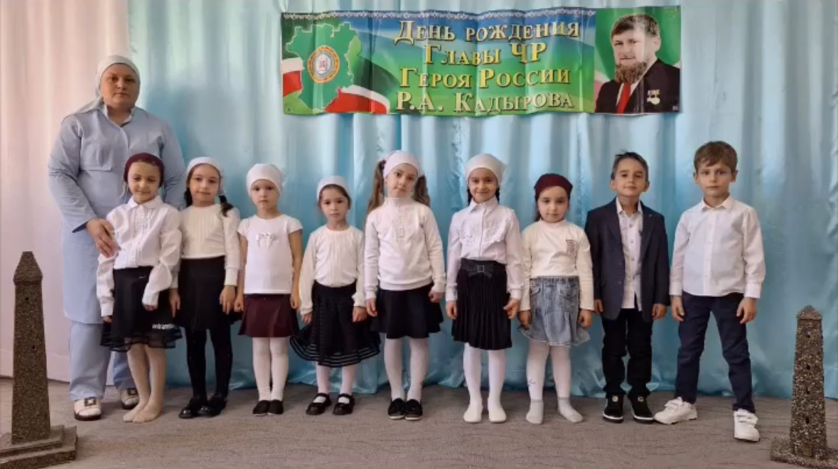 Мероприятие посвяшенное:,, Дню рождения Главы Ч.Р, Героя России Р.А. Кадырова. " Цель: патриотическое воспитание детей на примере героя России Р.А. Кадырова.