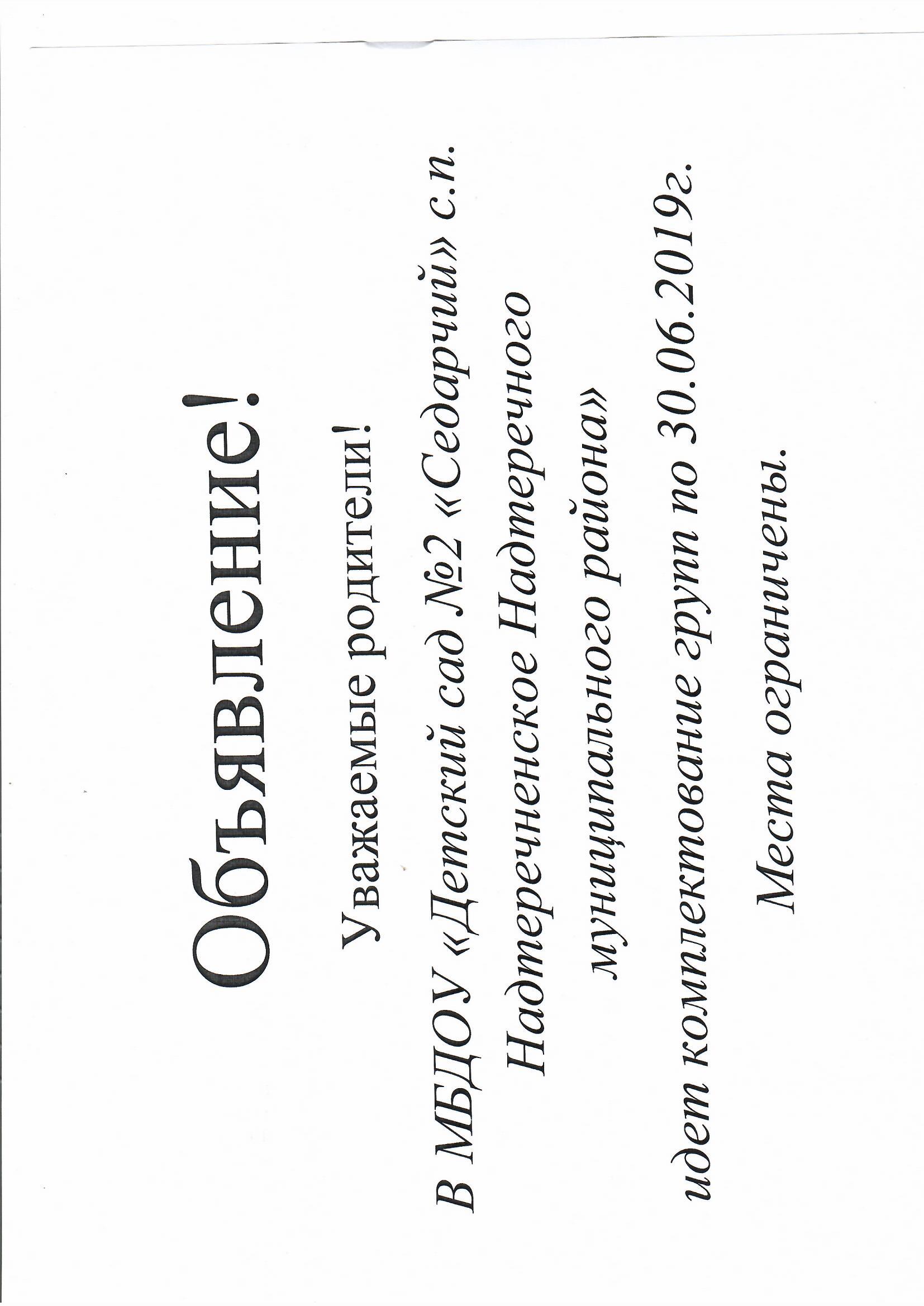 Объявление о комплектовании групп